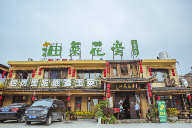 油菜花旁老柴房湘菜加盟店 是 背簍人家餐飲連鎖 旗下品牌,為還原80年代初田園民俗